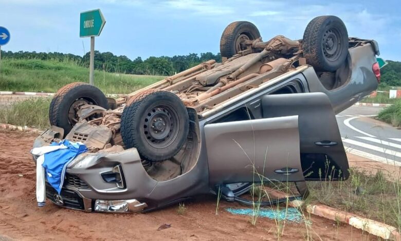 Un accident de circulation s’est produit dimanche, vers 17 heures, sur la route reliant Port-Gentil à Omboué, dans le département d’Étimboué, situé en Ogooué-Maritime, au sud du pays. L’incident s’est produit précisément au niveau du rond-point de Mandarove. D’après les premiers éléments d’enquête recueillis sur place, un Toyota Hilux, immatriculé HX 004 AA, a fait une sortie de route, se renversant dans des circonstances encore floues à ce stade de l’investigation.